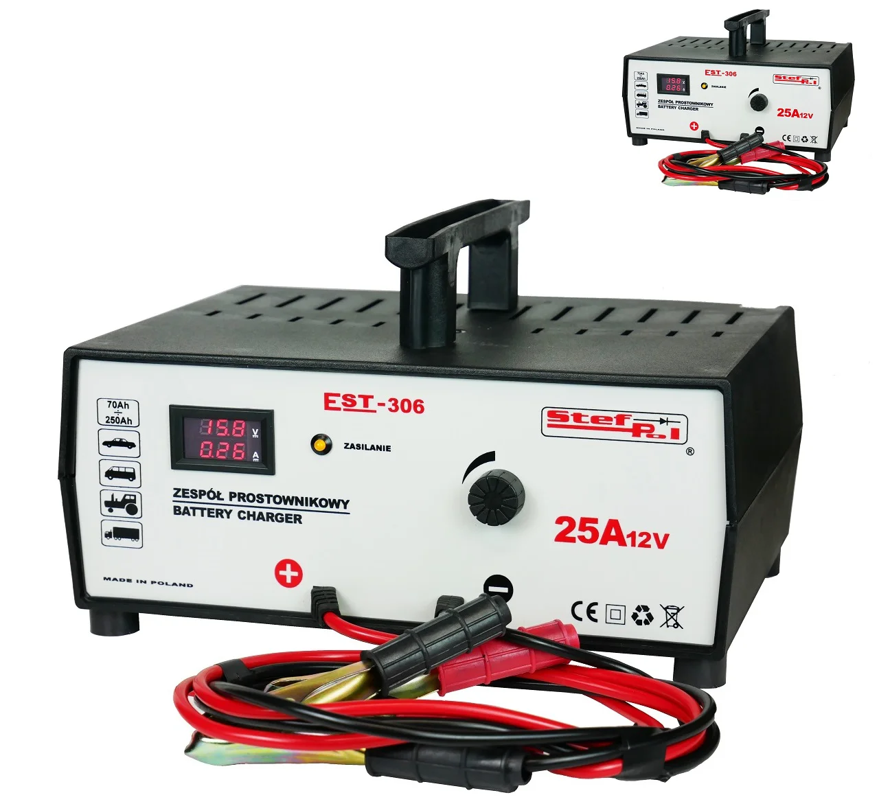 Zespół prostownikowy EST-306 przeznaczony jest do samoczynnego ładowania akumulatorów ołowiowo-kwasowych o napięciu 12V i pojemności 70÷250Ah.